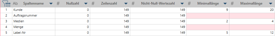 Standardmäßig werden Statistiktabellen entsprechend folgender Konvention benannt: <Tabellenname> - Statistiken <Zeitstempel>. Statistiktabellen, die anschließend von der selben Tabelle mit dem selben Zeitstempel erstellt werden, werden zusätzlich mit 1, 2, 3, etc. benannt. Diese Tabellen können später nach Belieben umbenannt werden.