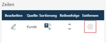 Wenn Sie später Ihre Meinung ändern und das ausgewählte Feld nicht mehr als Zeile in der Summierung verwenden möchten, können Sie es durch Klicken auf das Symbol Entfernen aus dem Fensterbereich „Zeilen“ entfernen.