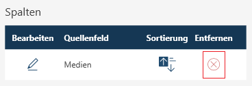Wenn Sie später Ihre Meinung ändern und das ausgewählte Feld nicht mehr als Spalte in der Summierung verwenden möchten, können Sie es durch Klicken auf das Symbol Entfernen aus dem Fensterbereich „Spalten“ entfernen.