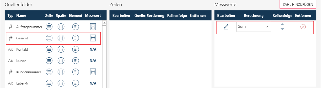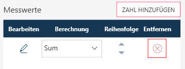 Wenn Sie später Ihre Meinung ändern und das ausgewählte Feld nicht mehr als Messwert in der Summierung verwenden möchten, können Sie es durch Klicken auf das Symbol Entfernen aus dem Fensterbereich „Messwerte“ entfernen.