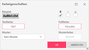 Wenn Sie auf die Schaltfläche Bearbeitenklicken, wird das Dialogfeld Farbeigenschaften geöffnet, in dem Sie die Text- und Füllfarbe auswählen können.