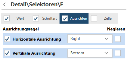 Die Registerkarte Ausrichtung dient zum Definieren von Selektoren gemäß den Ausrichtung-Eigenschaften.