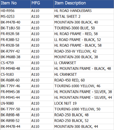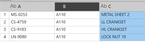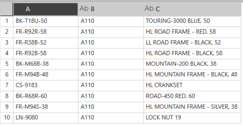 Der Ausdruck kann eine Mischung alphanumerischer Zeichen sein. Sie können * als Platzhalterzeichen verwenden, indem Sie * als Platzhalterzeichen verwenden auswählen. BeispieleSie können zum Beispiel verschiedene Ausdrücke verwenden, um Zeilen in einem Arbeitsblatt wie diesem zu selektieren: