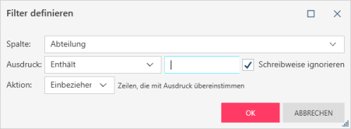 Das Dialogfeld <Typ ändern> wird angezeigt. Im folgenden Beispiel wird das Dialogfeld Filter definieren angezeigt, da es sich bei der zu bearbeitenden Änderung (wie im obigen Beispiel gezeigt) um eine Filterdefinition handelt.