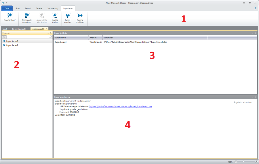 Exportergebnisse Zeigt die Ergebnisse aller Exportausführungen an. |