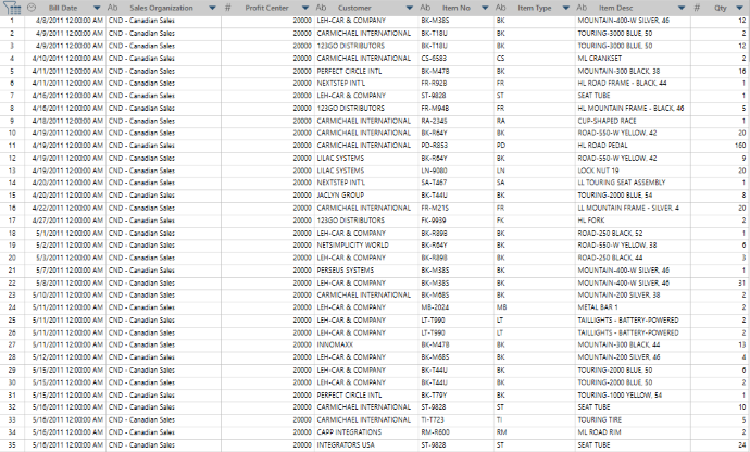 Beispielsweise Datensätze wie diese mit Kunde und Elemente und Menge: