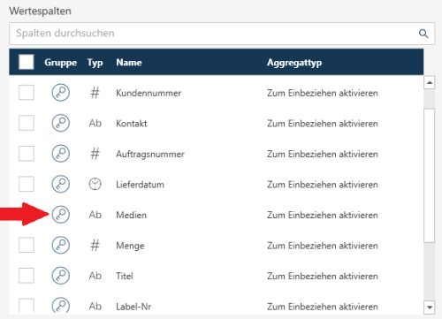 Wenn Sie bestimmte Spalten zur Verwendung als Werte auswählen möchten, markieren Sie das Kontrollkästchen neben der betreffenden Spalte.