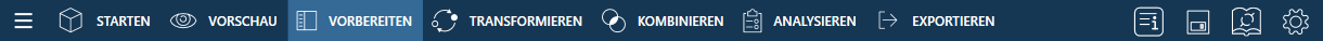 Die Symbolleiste Monarch Data Prep Studio verfügt über mehrere Werkzeuge, die alle zum Ausführen bestimmter Aufgaben zur Datenintegration, -vorbereitung und -transformation dienen.