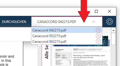 Um ein Dokument zu entfernen, klicken Sie auf das X-Symbol neben dem Dokument.