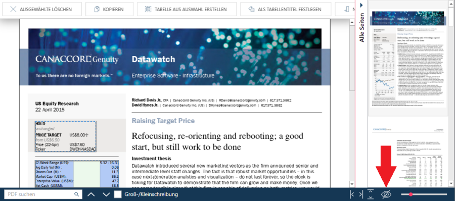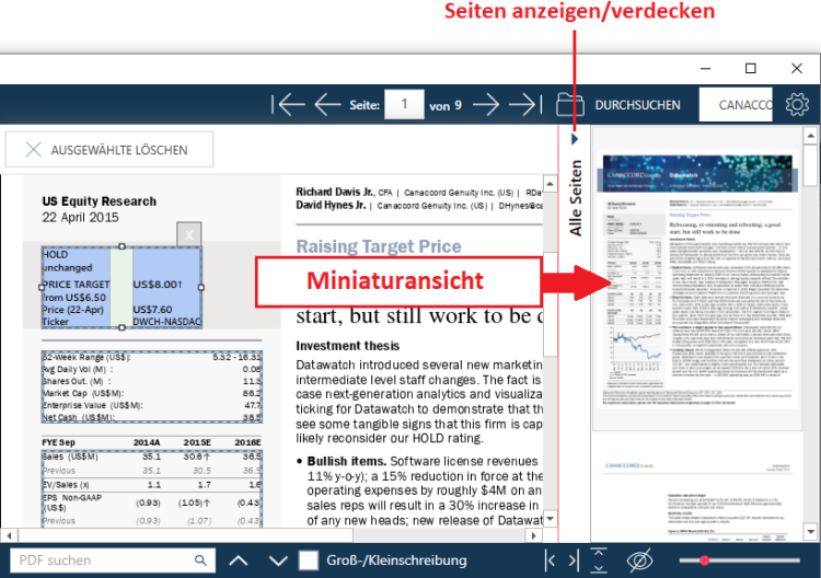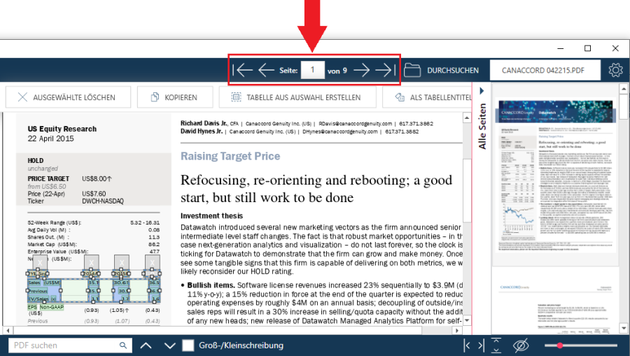 Der Monarch Table Extractor enthält Tools, mit denen Sie Ihr Dokument und dessen Seiten anzeigen und überprüfen können.