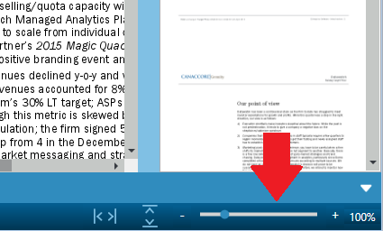Verwenden Sie die Seiten-Zoomsteuerung in der rechten unteren Ecke des Dokumentbereichs, um einen bestimmten Bereich der Seite zu vergrößern oder zu verkleinern: