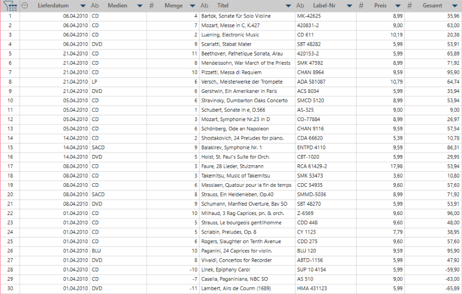 Abbildung 1. Auszug aus einer gewöhnlichen Tabelle in DPS.