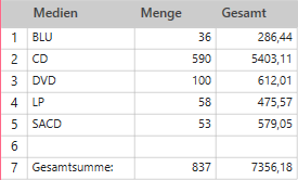 Anhand einer anderen Summierung erfahren Sie sogar, welcher Medientyp am beliebtesten war.