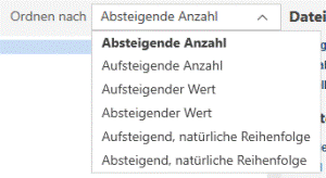 Sie können steuern, wie die Werte für eine ausgewählte Spalte angezeigt werden, indem Sie eine Option aus der Liste Ordnen nach im Unterbereich Spaltenstatistik auswählen.