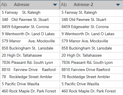 In diesem Beispiel ist Adresse die Originalspalte und Adresse – 2 die neuen Werte mit allen Leerzeichen ausgeblendet.