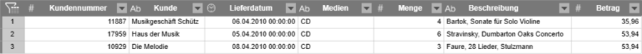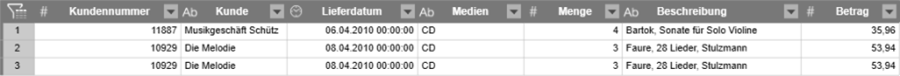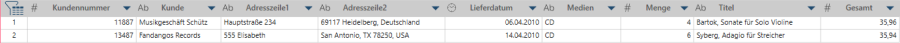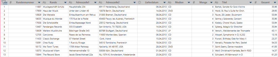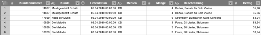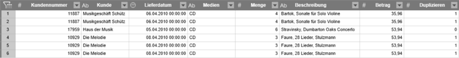 Es gibt zwei Gruppen von Duplikaten: Musikgeschäft Schütz kommt zwei mal vor und Die Melodie drei mal.