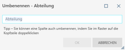 Ermöglicht das Ändern des Spaltennamens.