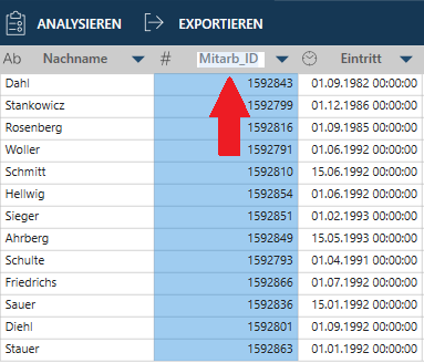 Eine Spalte unter Verwendung der Spaltenkopfzeile umbenennen