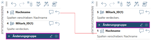 Ziehen Sie die betreffende Änderung einfach auf die gewünschte neue Position in der Änderungsverlaufliste.