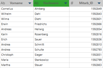 Wenn Sie anhand mehrerer Spalten sortieren, werden die Spalten von Monarch Data Prep Studio in der Reihenfolge sortiert, in der sie ausgewählt wurden.