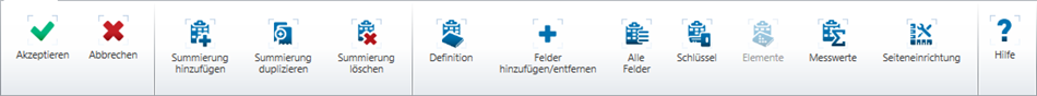 Die Multifunktionsleiste „Summierungsentwurf“ wird angezeigt, wenn Sie im Fenster „Summierungsansicht“ die Option Summierungsentwurf auswählen.