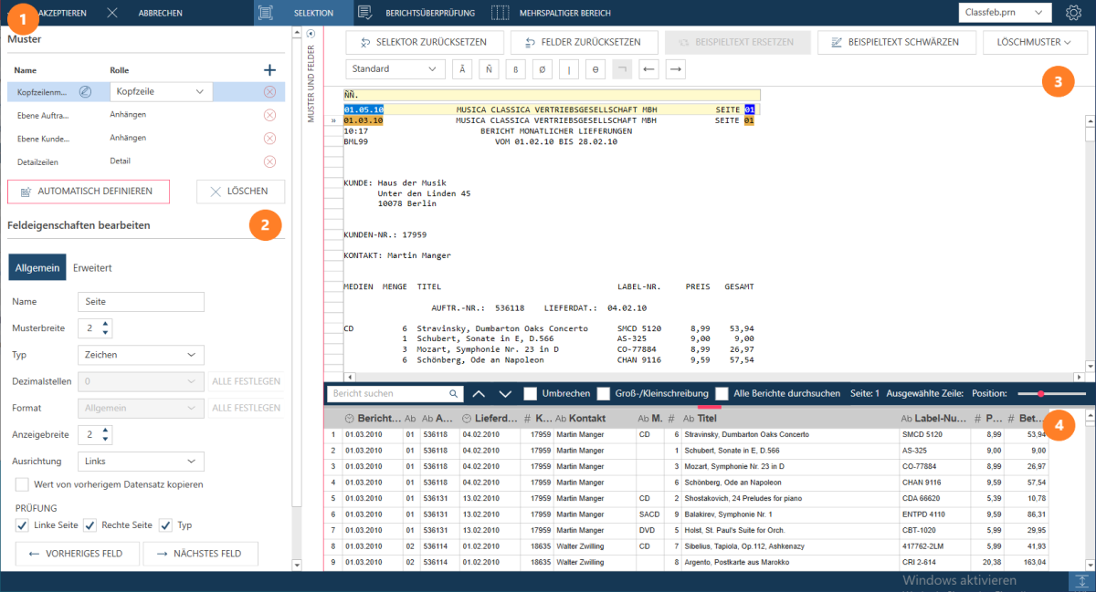 Fensterbereiche des Fensters „Berichtsentwurf“