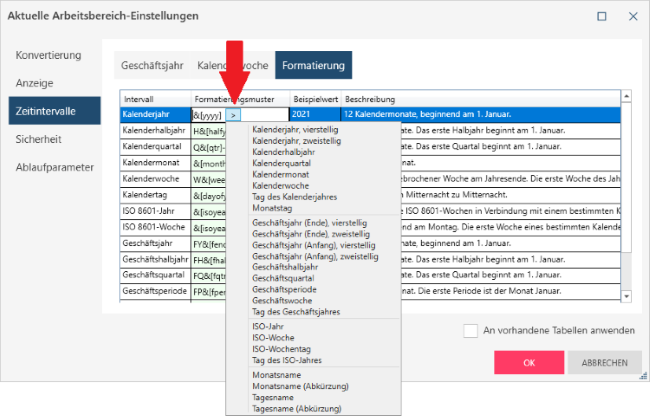 Formatierungsmaske zu bearbeiten, doppelklicken Sie auf die gewünschte