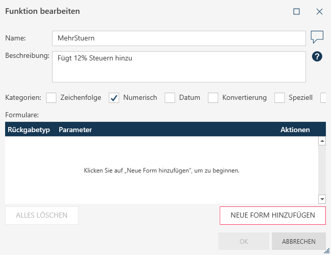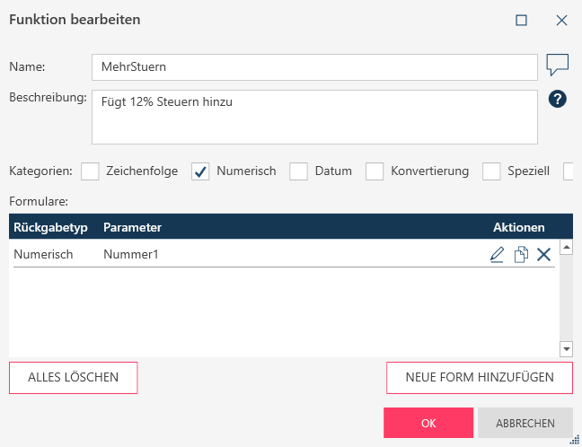 - Klicken Sie im Dialog Funktion bearbeiten auf OK.