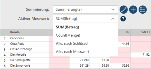 Wenn Sie den Mauszeiger auf den im Dropdown-Menü Summierung ausgewählten Namen der Summierung setzen, wird deren Beschreibung angezeigt, falls eine definiert wurde.