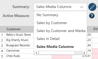 Sie können eine beliebige Anzahl von Summierungen für eine ausgewählte Tabelle erstellen und dann unter Verwendung des Dropdown-Menüs „Summierung“ anzeigen.