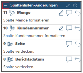 klicken, die sich rechts neben dem Namen der Änderungsgruppe befindet. Diese Aktion löscht die Änderungsgruppe und alle in der Gruppe enthaltenen Änderungen aus der Änderungsverlaufliste.