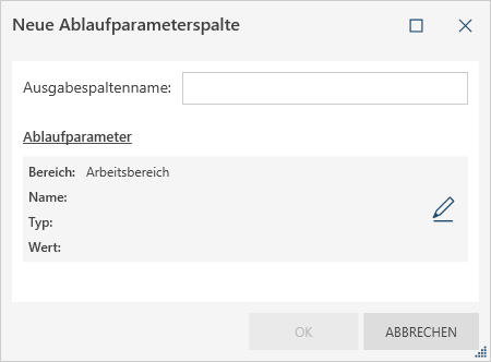 Das Dialogfeld Neuer Ablaufparameter wird angezeigt: