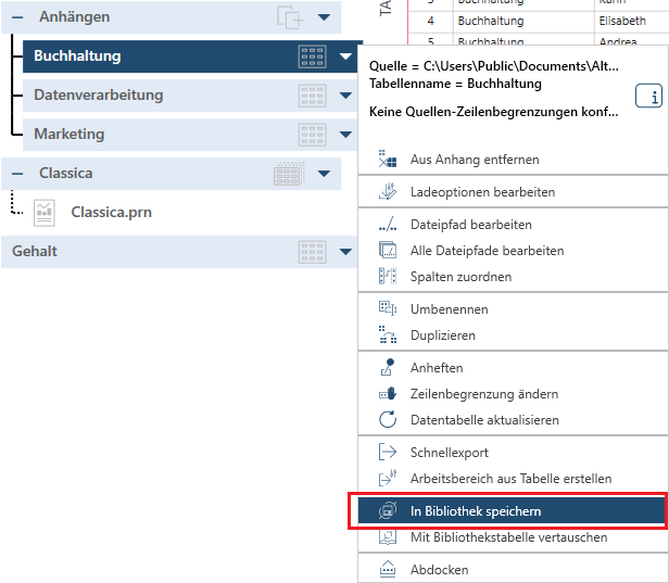 Wenn Sie eine Datenquelle in der Bibliothek speichern, speichert Monarch Data Prep Studio auch den Pfad oder den Speicherort der Quelle. Sie können dann über die Bibliothek leicht auf häufig verwendete Datenquellen beim Definieren von Arbeitsbereichen zugreifen, ohne dass die Datenquelle geöffnet oder Tabellen geladen werden müssen.