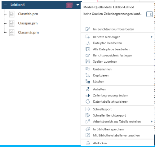 Wenn die Tabelle eine Berichts- oder PDF-Datei als Datenquelle nutzt, können Sie außer den obigen Aktionen auch Folgendes tun: