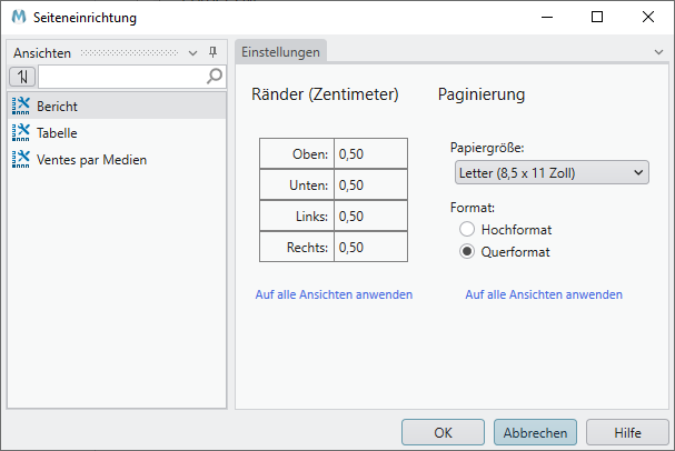 Ränder für Berichte einstellen