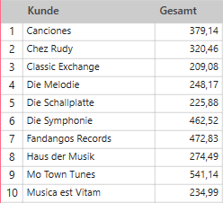 Teil der Summierung ausgeblendet, um die Gesamtverkäufe pro Kunde anzuzeigen.