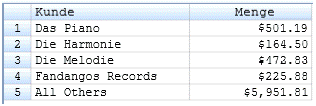 Verwendung von spezifizierten Werten, um Informationen über zwei Kunden (Die Melodie und Musikgeschäft Schütz) anzuzeigen.
