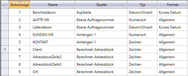Felder im Tabellenfenster verschieben