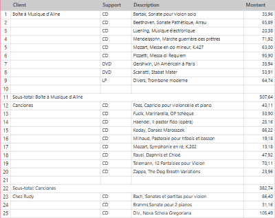 Ajout de lignes blanches après une ligne d’en-tête dans un récapitulatif