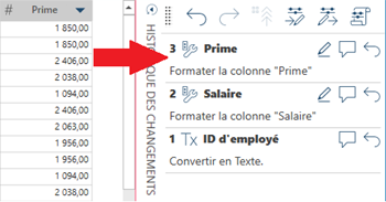 Monarch Data Prep Studio permet de « réutiliser » des changements que vous avez déjà apportés en association avec la liste Historique des changements.