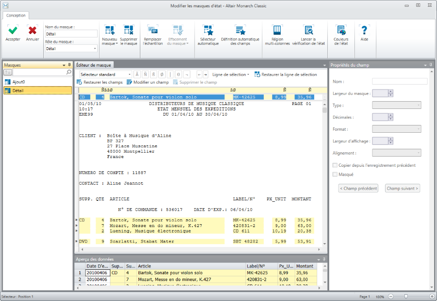 Vous pouvez modifier les masques qui s'affichent dans le sélecteur de masques ou créer plus de masques si vous le souhaitez (p. ex. vous pourriez souhaiter capturer les informations client, qui, dans cet exemple, n'ont pas été capturées par la fonction Définition automatique). Vous pouvez enregistrer tous les masques créés dans un modèle.