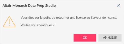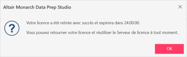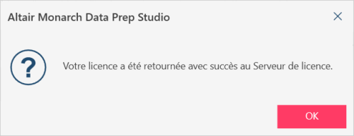Cliquez sur OK pour effectuer le retour de votre licence dans le serveur de licence.