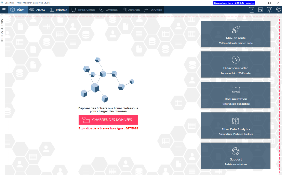 Quand votre licence est en mode retrait, des indicateurs sont affichés sur la page d’accueil de Data Prep Studio pour vous rappeler quand vous devez retourner votre licence.