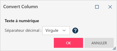 Dans la fenêtre de préparation des données, cliquez avec le bouton droit sur une colonne puis sélectionnez Convertir dans le menu contextuel.