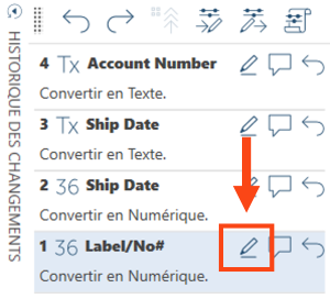 Vous pouvez modifier les changements de type de colonne dans la fenêtre Historique des modifications en procédant comme suit :