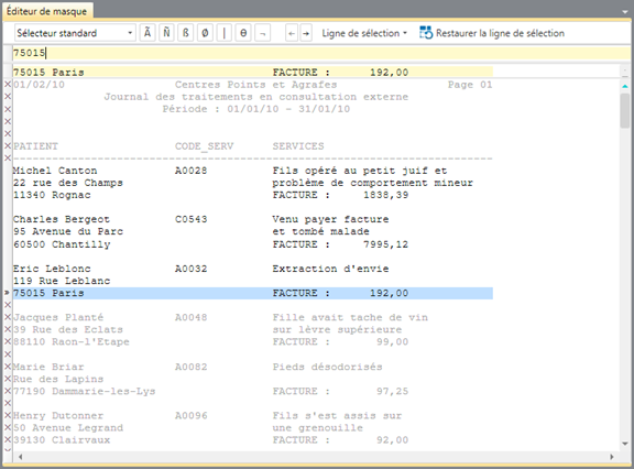 Les masques d’exclusion servent à préciser des lignes ou parties de lignes qu’un masque de détail, d’ajout, d’en-tête ou de pied de page ne devra pas capturer.