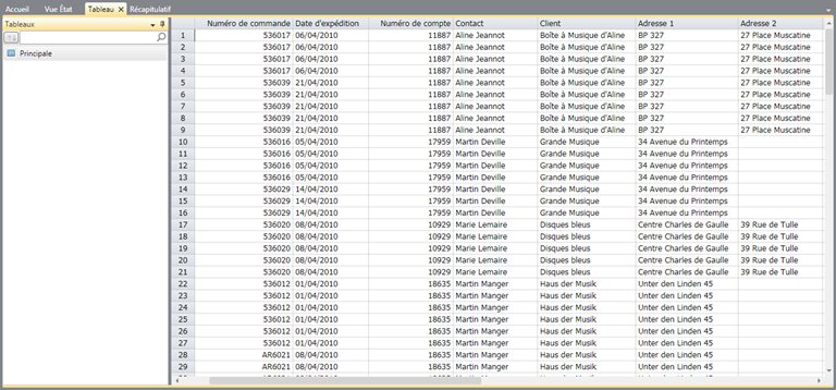 Chaque ligne de détail extraite de l’état forme un enregistrement dans le tableau.