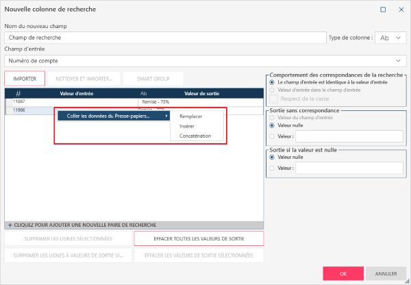 Si vous désirez modifier les valeurs d’entrée ou de sortie en collant des données du Presse-papiers, sélectionnez la ou les valeurs à modifier, cliquez avec le bouton droit et choisissez Coller les données du Presse-papiers...