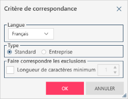 La boîte de dialogue Critère de correspondance s’ouvre.