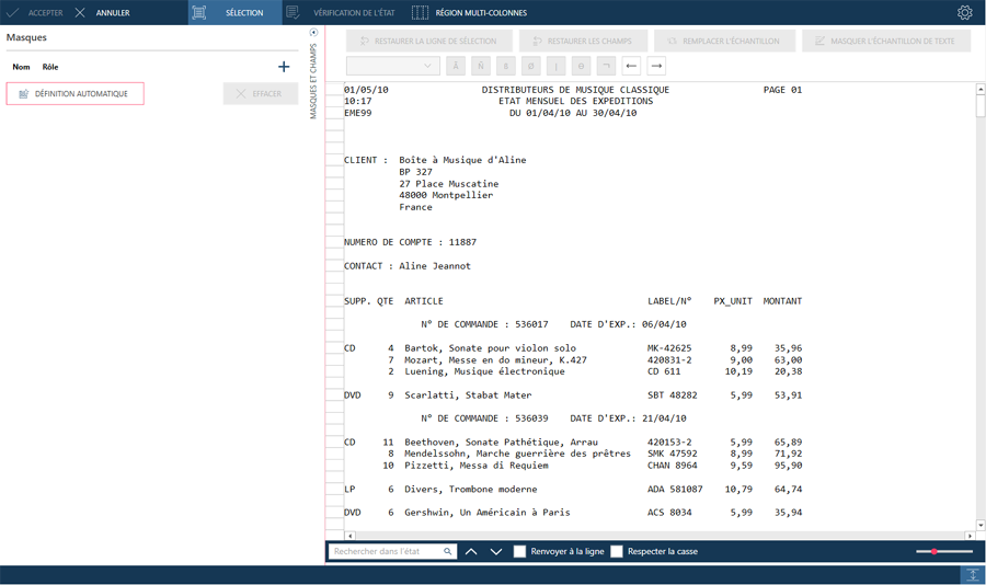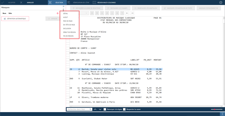 Masque d’en-tête de page : Ce type de masque sert à extraire les champs qui figurent en tête de chaque page. On parle d’en-tête de page. Les champs extraits par le masque d’en-tête s’ajoutent à chaque enregistrement.